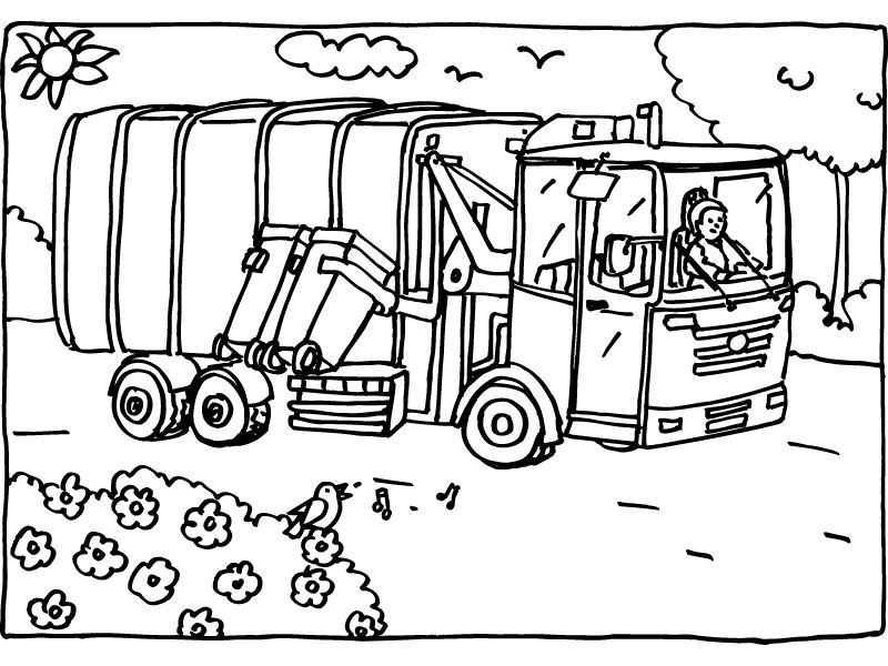 Details van Kleurplaat Vuilniswagen Als Ontwerp Voor Een Feesth.