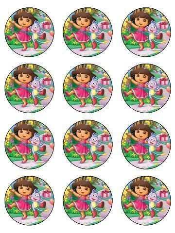 | Kleurplaat Titel | : 12 Dora Birthday Edible Icing Cupcake Cup Cake Deco |