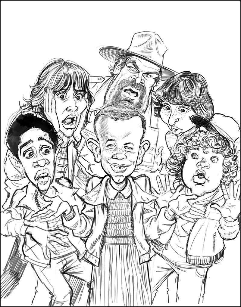 Gratis afdrukbare Stranger Things Kleurplaten voor kinderen van alle leeftijden. U kunt ze afdrukken of downloaden om ze in kleur te kleuren en aan uw familie en vrienden aan te bieden. De kleurplaten helpen uw kind om zich te concentreren op details terwijl het ontspannen en comfortabel is.